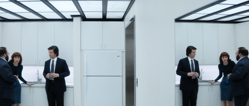 L’engagement de certains personnages envers Lumon, au point de se sacrifier pour répondre aux attentes de l’entreprise, est un autre fil conducteur de cet épisode. La loyauté maladive de Milchick envers Lumon, qui le conduit à se punir lui-même et à renier son individualité, est particulièrement marquante. Ce comportement illustre la manière dont le conditionnement imposé par l’entreprise peut détruire l’essence même de l’humain.